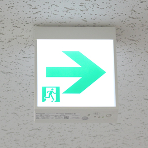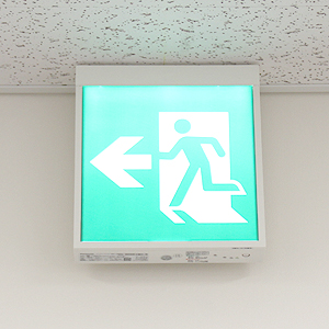 停電時も非常電源で点灯し、避難口へ誘導します。