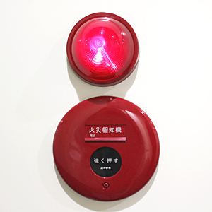 感知器により熱や煙を検知するほか、非常ボタンを押すことで受信機に火災を知らせます。